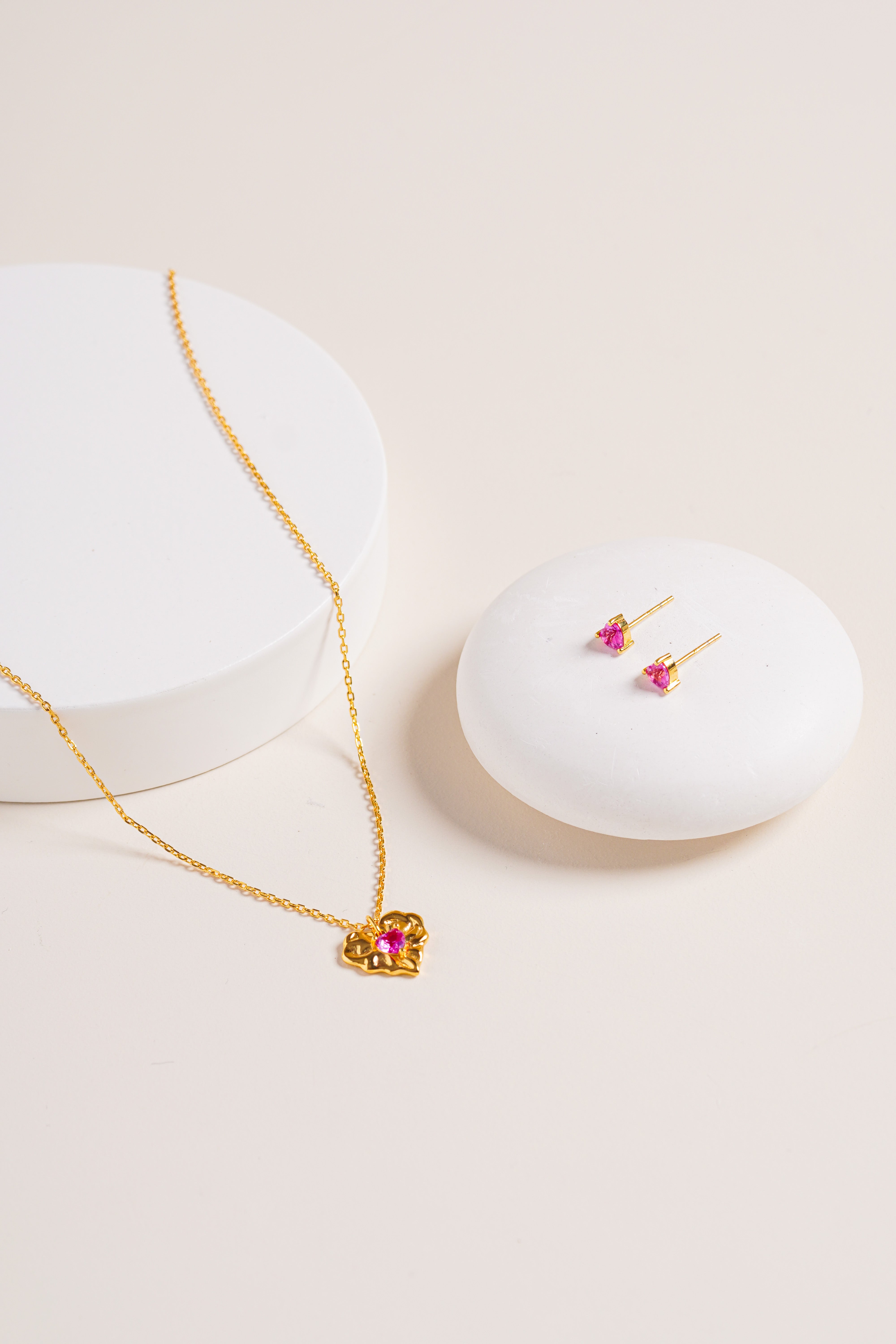 Celebrate love and milestones with the Ruby Liberty Heart Necklace. Featuring a heart-shaped design adorned with ruby corundum stones, this piece is crafted from a sterling silver base with a luxurious 2.5-micron solid gold finish. The adjustable chain ensures a comfortable fit as your child grows, making it a perfect keepsake for any occasion.